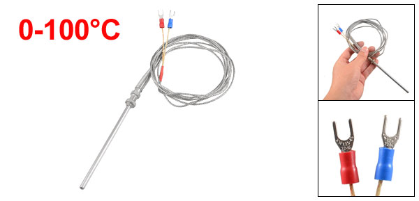 6.4Ft 2 Spade Terminal K Type 0-100C Thermocouple Temperature Sensor Probe