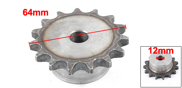 64mm Diameter 12mm Inner Hole Dia 15 Tooth Simplex Sprocket Gear Wheel