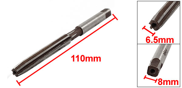 Product Name Reamer Material HSS Flute Number 6 Cutting Diameter 6.5mm / 0.25" Flute Length 56mm / 2.2" Shank Diameter 8mm / 0.315" Total Length 110mm / 4.3" Color Silver Tone, Yellow Weight 33g Package Content 1 x Reamer - Reviews