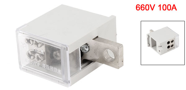 Product Name Junction Box Model HS6 Design One Inlet Four Outlet Rated Current 660V, 50Hz /60Hz Rated Insulation Voltage 100A Power Frequency Withstanding Voltage 3000V/min Insulation Resistance >40MΩ Ambient Temperature -40 ~ 120 Celsius Degree Inner Screw Size 3.5mm Pin Part Hole Size 8mm/ 0.32" Mounted Hole 4mm/0.16" Total Size (Approx) 62 x 46 x 28mm/ 2.4" x 1.8" x 1.1"(L*W*T) Material Metal, Plastic Main Color Clear, Gray Weight 119g Package 1 x Junction Box - Reviews