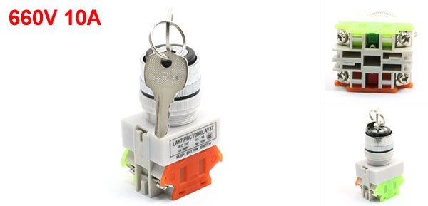 660V 10A 1NO 1NC DPST Keylock 2 Position Push Button Switch w 2 Keys