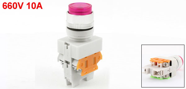 660V 10A 1NO 1NC Fuchsia Round Head Selector Latching Push Button Switch