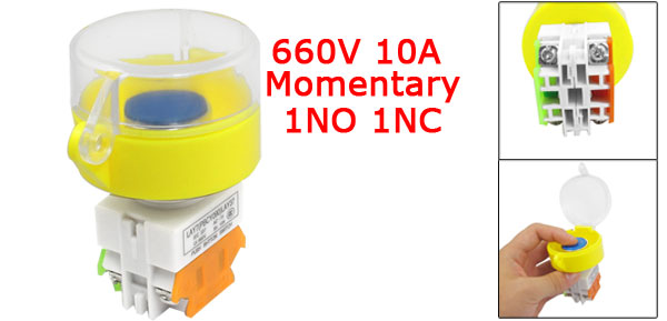 660V 10A 1NO 1NC Momentary Blue Button Yellow Protective Cover Pushbutton Switch