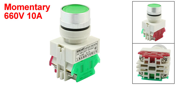 Terminal Quantity 4 Button Color Green Panel Cutout Diameter 22mm / 0.9" Fit Panel Max. Thickness 5mm / 0.2" Button Diameter 2.4cm / 0.9" Total Size(Approx) 6.5 x 3.8 x 3cm/2.6" x 1.5" x 1.2"(L*W*H) External Material Plastic, Metal, Electric Parts Main Color Green, White Net Weight 39g Package Content 1 x Push Button Switch - Reviews