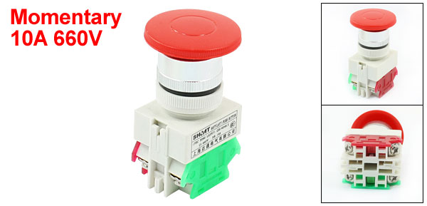 660V 10A DPST Momentary Action Red Mushroom Head Push Button Switch