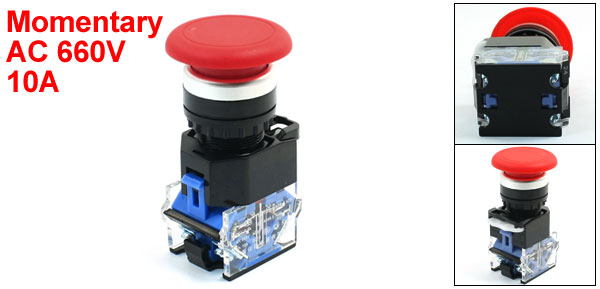 660V 10A DPST Momentary Red Mushroom Head Emergency Stop Pushbutton Switch