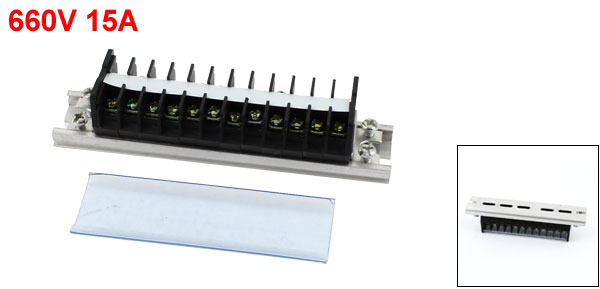 Product Name Barrier Terminal Block Material Plastic, Metal, Aluminum Color Black, Silver Tone Type 12 Postions, 2 Rows Current 660V, 15A Each Compartment Width 0.7cm / 0.28" Size 13 x 3 x 3cm / 5.1" x 1.2" x 1.2"(L*W*H) Weight 75g Package Content 1 x Barrier Terminal Blocks - Reviews
