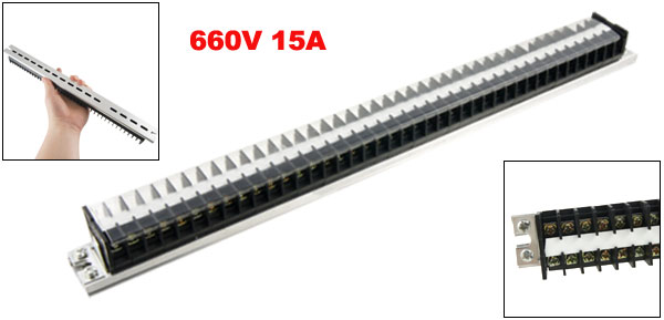 Product Name Barrier Terminal Block Material Metal, Plastic, Aluminum Rated Value 660V 15A Poles 40P (Dual Row) Size 365 x 27 x 29mm/ 14.4" x 1" x 1.1" (L*W*T) Color Black, Clear, Silver Tone Net Weight 215g Package Content 1 x Barrier Terminal Block - Reviews