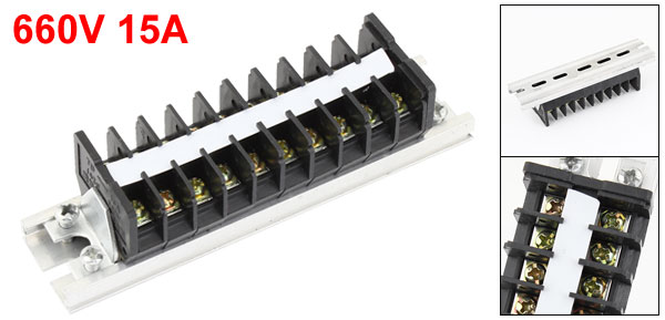 660V 15A Double Rows 10P 10 Positions Barrier Strip Screw Terminal Block