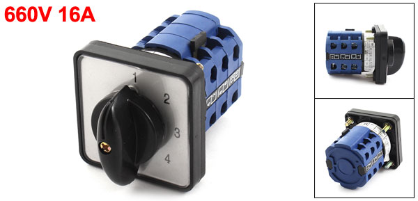 Product Name Changeover Switch Model No. LW39B-16 Ui 660V Ith 16A Terminals 16 Screw Terminals Positions 5 Positions Panel Size 50 x 50 x 12mm/2" x 2" x 0.47"(L*WT) Body Diameter 4.3cm /1.7" Overall Size 5 x 5 x 8cm /2" x 2" x 3.1"(L*W*H) Mount Hole Dia 5mm/0.2" Total Weight 124g Package Content 1 x Changeover Switch