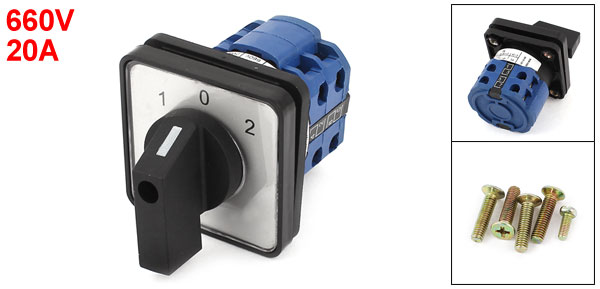 AC-3 5APositions 3Positions (1-0-2) Terminal Number 8 Body Size 45 x 45 x 38mm / 1.8" x 1.8" x 1.5"(L*W*H) Overall Size(Approx.) 50 x 50 x 80mm / 2" x 2" x 3.1"(L*W*H) External Material Plastic Total Weight 113g Package Content 1 x Combination Switch