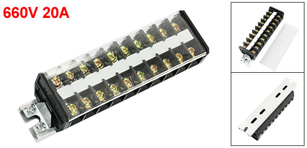 Product Name Barrier Terminal Block Model TD-AZ1 Rating 660V 20A Type 10 Positions, 2 Row Wire Section 1-2.5mm2/14-18Awg Barrier Terminal Block Size 12 x 4 x 3cm/4.7" x1.6" x 1.2"(L*W*H) Total Size 15 x 4 x 3.5cm /6" x 1.6" x 1.4" (L * W *T) Material Metal, Plastic Color Black, Silver Tone, Clear Weight 123g Package Content 1 x Barrier Terminal Blocks - Reviews