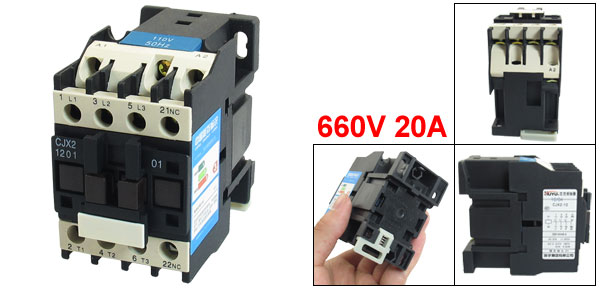 Product Name AC Contactor Model Number CJX2-1201 Rated Coil Voltage AC 110V Frequency 50/60Hz Contact Type 1NC Pole Number 3 Pole Conventional Thermal Current(Ith) 20A Rated Insulation Voltage(Ui) AC 660V AC-3 Rated Voltage(Ue) 220/380 AC-3 Controled Power(Pe) 3/5.5KW Total Size(Approx) 79 x 46 x 71mm/ 3.1" x 1.8" x 2.8" (L*W*H) Rail Mounting 35mm DIN Rail Material Plastic, Electrical Parts Main Color Black Net Weight 341g Package Content 1 x AC Contactor - Reviews