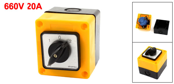 Main Color Orange, Black Overall Size 77 x 71 x 90mm / 3" x 2.8" x 3.5"(L*W*H) Brand DMiotech Terminals 8 Screw Terminals Country of Manufacture CHINA Body Diameter 43mm/ 1.7" Material Plastic, Metal Ith 20A Ui 660V Ue 440V Panel Size 50 x 50 x 6mm/ 2" x 2" x 0.24"(L*WT) Product Name Changeover Switch Net Weight 175g AC-3 5A Mounting Size 54 x 49mm/ 2.1" x 1.9"(L*W) Package Content 1 x Changeover Switch w Cover AC -15 0.95A DC-13 0.14A Pole Numbers 2 Positions 3 Positions(1-0-2) - Reviews
