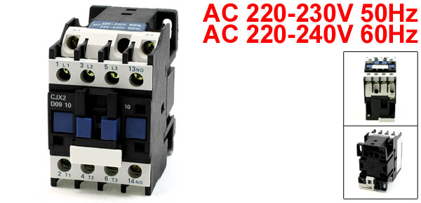 Product Name AC Contactor Model Number CJX2-0910 Coil Rated Voltage & Frequency AC 220-230V 50Hz, AC 220-240V 60Hz Ui 660V Ith 20A AC-3 380V(Ue), 12A(Le), 5.5Kw(Pe) Mounting Type 3.5mm DIN Rail Number of Contact 3P+NO Overall Size(Approx.) 8 x 7 x 4.5cm / 3.2" x 2.8'' x 1.8''(L*W*H) Materials Plastic, Metal, Electric Parts Main Color Black Net Weight 352g Package Content 1 x AC Contactor - Reviews
