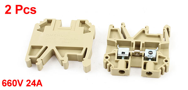 660V 24A 2.5mm2 SAK-2.5 DIN Rail Terminal Block Connector Khaki 2 Pcs