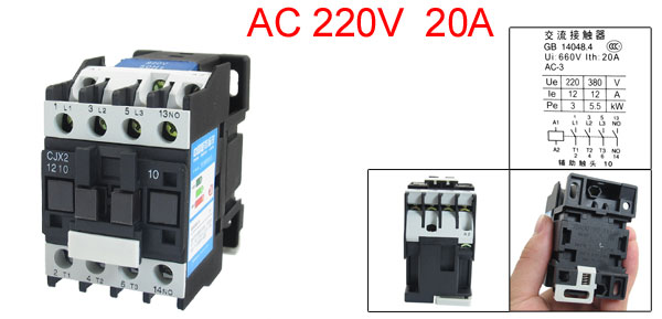 Product Name AC Contactor Model Number CJX2-1210 Rated Coil Voltage AC 220V Frequency 50/60Hz Contact Type 1NO Pole Number 3 Pole Conventional Thermal Current(Ith) 20A Rated Insulation Voltage(Ui) AC 660V AC-3 Rated Voltage(Ue) 220/380V AC-3 Rated Current(Ie) 12/12A AC-3 Controled Power(Pe) 3/5.5KW Total Size(Approx) 79 x 46 x 71mm/ 3.1" x 1.8" x 2.8" (L*W*H) Rail Mounting 35mm DIN Rail Material Plastic, Electrical Parts Main Color Black Net Weight 344g Package Content 1 x AC Contactor - Reviews
