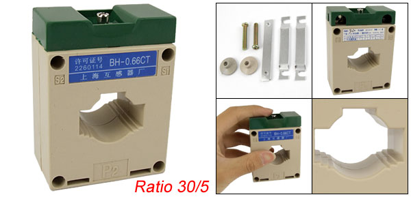Product Name Current Transformer Model Number BH-0.66CT Rated Current Ratio 30/5 Accuracy Class 0.5 Conductor Through 1T Rated Load 5VA Prescribed Minimum 3.75VA Frequency 50/60Hz Maximum Rated Voltage 0.66KV Primary Current(A) 150 75 50 30 15 Primary Coil Number of Turns 1 2 3 5 10 Perforation Size 23mm(Diameter), 30.5 x 11mm Overall Size 80 x 60 x 37mm/3.1" x 2.4" x 1.5"(L*W*T) Material Plastic, Electronic Parts Color As Picture Shown Weight 244g Package Content 1 x Current Transformer