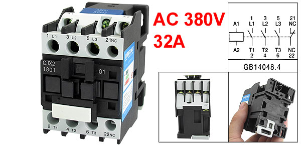 Product Name AC Contactor Model Number CJX2-1801 Rated Coil Voltage AC 380V Frequency 50/60Hz Contact Type 1NC Pole Number 3 Pole Conventional Thermal Current(Ith) 32A Rated Insulation Voltage(Ui) AC 660V AC-3 Rated Voltage(Ue) 220/380 AC-3 Controled Power(Pe) 4/7.5KW Total Size(Approx) 79 x 44 x 71mm/ 3.1" x 1.7" x 2.8" (L*W*H) Rail Mounting 35mm DIN Rail Material Plastic, Electrical Parts Main Color Black Net Weight 365g Package Content 1 x AC Contactor - Reviews