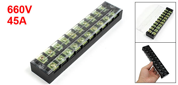 Product Name Screw Terminal Strip Material Metal, Plastic Position 10 Rated Value 660V 45A Size 18.5 x 3.5 x 2.2cm/ 7.3" x 1.3" x 0.86" (L*W*T) Color Black, Bronze Tone Weight 167g Package Content 1 x Terminal Strip - Reviews
