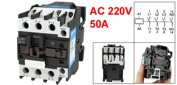 Product Name AC Contactor Model Number CJX2-3210 Rated Coil Voltage AC 220V Frequency 50Hz Contact Type 1NO Pole Number 3 Pole Conventional Thermal Current(Ith) 50A Rated Insulation Voltage(Ui) AC 660V AC-3 Rated Voltage(Ue) 220/380V AC-3 Rated Current(le) 32/32A AC-3 Controled Power(Pe) 7.5/15KW Total Size(Approx) 94 x 55 x 80mm/ 3.7" x 2.2" x 3.1" (L*W*H) Rail Mounting 35mm DIN Rail Material Plastic, Electrical Parts Main Color Black, Gray Net Weight 547g Package Content 1 x AC Contactor - Reviews