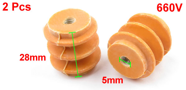 Details660V 5mm Thread 28mm Height Orange Busbar Enhanced Insulator Supporter 2pcs  Product Name Busbar Insulator Main Material Dough Molding Compound Unsaturated Resin Withstanding Voltage 660V Main Color Orange Female Thread Dia 5mm/ 1/5" Size 28 x 27mm/ 1.1" x 1.1"(H*D) Total Weight 44g Package Content 2 x Busbar Insulator