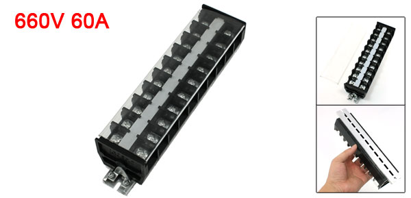Product Name Terminal Block Model DT-6010 Type 2 Rows, 10 Positions Material Metal, Plastic Color Black, Silver Tone, Clear Rated Voltage 660V 60A Rail Mount Width 25mm/ 1" Total Size 22 x 5.5 x 5.5cm /8.6'' x 2.2'' x 2.2"(L*W*H) Weight 349g Package Content 1 x Barrier Terminal Block - Reviews