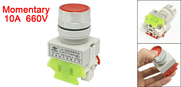 Product Name Push Button Switch Material Plastic, Metal Poles DPST Type Momentary Ith 10A Ui 660V Terminal Number 4 Mounting Hole 2.3cm / 0.9" Button Diameter (Approx.) 2.4cm / 0.94" Total Size (Approx.) 3.7 x 3 x 6.3cm/1.5" x 1.2" x 2.5" (L*W*T) Button Color Red Weight 40g Package Content 1 x Push Button Switch - Reviews