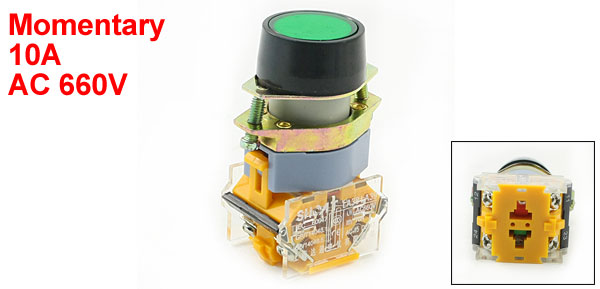 660VAC 10A 4 Terminals Momentary Green Push Button Switch 1 NO 1 NC