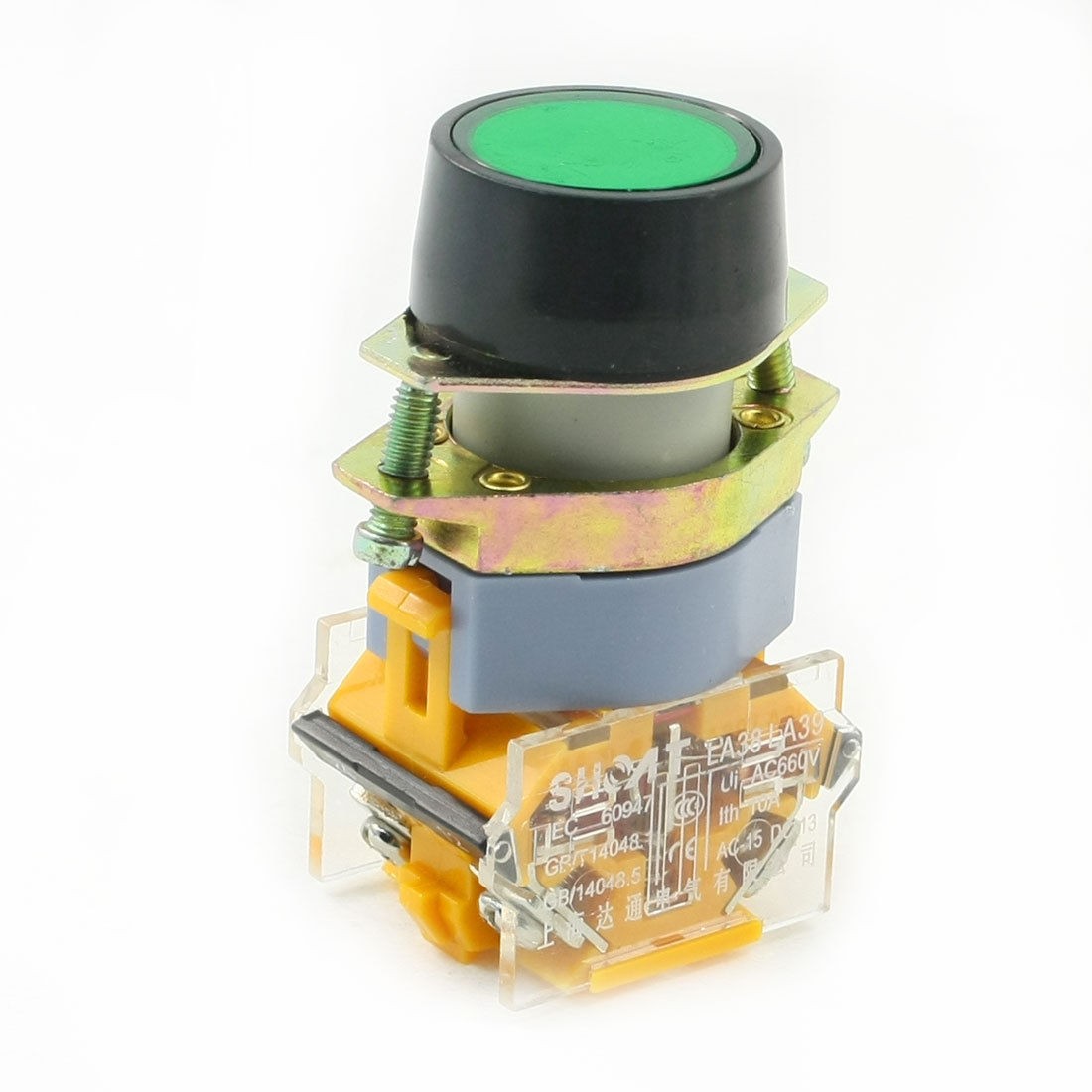 Product Name Push Button Switch Model No. LA39-11 Contact Type 1 NO + 1 NC Action Type Momentary Ith 10A Ui AC 660V Panel Cutout Diameter 21mm / 0.83" Fit Panel Thickness(Adjustable) 7mm / 0.28" Button Diameter 2.4cm / 0.94" Total Size 4.4 x 2.9 x 6.5cm / 1.7" x 1.1" x 2.6" (L*W*H) Main Material Plastic, Metal Main Color Push Button: Green
