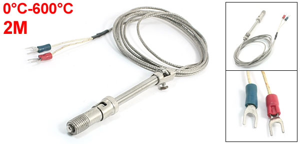 Product Name Thermocouple Type K Type, Tension Spring Sleeve Temperature Range 0°C-600°C Probe Dia 5mm/0.2" Thread Diameter 12mm/ 0.47" Cable Length 2M / 6.6Ft External Shielding Metal Braided Shield Material Metal, Nylon Net Weight 60g Package Content 1 x Thermocouple - Reviews