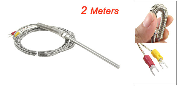 Product Name Thermocouple Probe Type K Type Fork Pin Number 2 Temperature Range 0°C-400°C Sensor Size 5 x 100mm/ 0.2" x 3.9" (D*L) Fork Pin Size 9 x 5mm/ 0.4" x 0.2"(L*W) Pin Spacing 4mm/ 0.2" External Shield Material Metal Total Length(Approx.) 2M / 6.6 Ft Color Silver Tone Weight 46g Package Content 1 x Earth Thermocouple Probe - Reviews