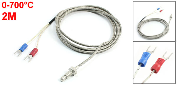 Product Name Thermocouple Transfer Type K Temperature 0-700C Thread Diameter 6mm / 0.24" Fork Terminal Spacing 4mm / 0.2" Probe Diameter 4.5mm/ 0.2" External Shielding Metal Braided Shield Total Length 2M / 6.6Ft Color Gray Weight 33g Package Content 1 x Thermocouple - Reviews