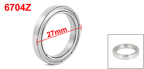 Product Name Deep Groove Ball Bearing Type 6704Z Material Metal Outer Diameter 27mm / 1.06" Inner Diameter 20mm / 0.8" Thickness 4mm / 0.16" Main Color Silver Tone Weight 6g Package Content 1 x Deep Groove Ball Bearing - Reviews