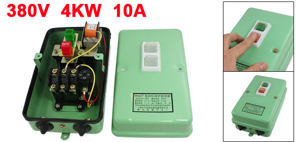 Product Name Motor Starter Shell Material Metal Starter Rated Voltage:380V Rated Power:4KW / 5.4HP Rated Current:10A Setting Current 6.8-11A Shunt Trip Coil Voltage:120-430V, 50Hz Wire Diameter:0.17mm Turn Number:2900 Control Box Total Size 200 x 120 x 85mm / 7.8 x 4.7" x 3.3" (L * W * H) Fixing Hole Diameter 4.9mm / 0.19"; 7.9mm/ 0.31" Box Color Green Weight 1053g Package Content 1 x Motor Starter - Reviews
