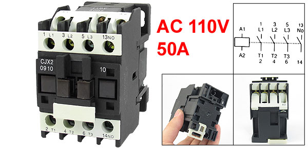 Product Name AC Contactor Model Number CJX2-0910 Rated Coil Voltage AC 110V Frequency 50Hz Contact Type 1NO Pole Number 3 Pole Conventional Thermal Current(Ith) 50A Rated Insulation Voltage(Ui) AC 690V AC-3 Rated Voltage(Ue) 220/380/480/660V AC-3 Controled Power(Pe) 2.2/4/5.5KW Total Size(Approx) 75 x 45 x 50mm/ 2.9" x 1.8" x 2" (L*W*H) Rail Mounting 35mm DIN Rail Material Plastic, Electrical Parts Main Color Black, Gray Net Weight 345g Package Content 1 x AC Contactor - Reviews