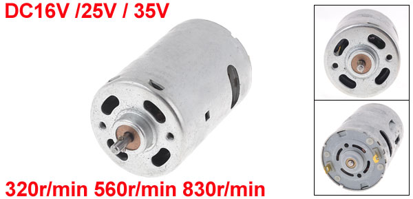 Product Name DC Motor Model No. 6987 Input Voltage 18-24V Working Voltage DC16V /25V / 35V Load Speed 320r/min, 560r/min, 830r/min Current(Max.) 0.25A Stall Current 19A Output Torque 4-16kg/cm Body Size 50 x 35mm / 2" x 1.4"(L*D) Shaft Dia. 2.1mm/ 0.08" Total Length 70mm / 2.8" Main Color Silver Tone Main Material Aluminium, Copper Weight 156g Package 1 x DC Motor - Reviews