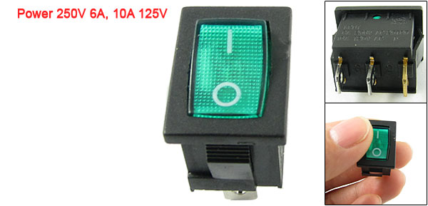 Product Name Rocker Switch Color Black, Green Material Plastic, Electrical Part Type KCD1 Single Throw Single Pole IndIcator Green Neon Light Power 250V 6A, 10A 125V Withband Voltage ≥1500V/Min Insulance ≥1000MΩ Contact Resisitance ≤50MΩ Max Press Number 10000 Total Size 2.1 x 1.5 x 2.2cm /0.8" x 0.6" x 0.87"(L*W*H) Mount Hole Size 1.8 x 1.2cm / 0.71" x 0.47"(L*W) Distance of Each Pin 6.56mm Net Weight 5.1g Package Content 1 x Rocker Switch - Reviews