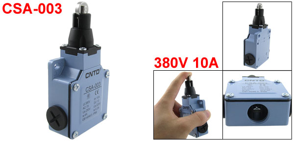Details6A/250VAC 0.3A/220VDC Parallel Roller Plunger Enclosed Limit Switch CSA-003  Product Name Limit Switch Model No. CSA-003 Actuator Action Momentary Actuator Type Parallel Roller Plunger Contact Type