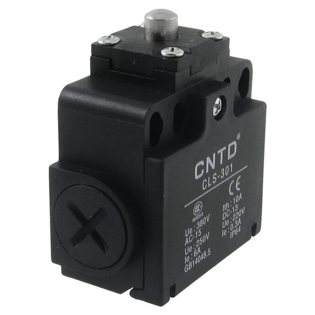 Product Name Limit Switch Model No. CLS-301 Actuator Action Momentary Actuator Type Short Spring Plunger Stroke 5.8mm Contact Type 1NC + 1NO(SPDT) Ui 380V Ith 10A AC-15 Ue: 250V, Ie: 6A DC-13 Ue: 220V, Ie: 0.3A Plunger Diameter 8mm / 0.31" Total Size 64 x 58 x 29mm / 2.5" x 2.3" x 1.1"(L*W*T) Material Resin, Plastic & Metal Net Weight 67g Package Content 1 x Limit Switch - Reviews
