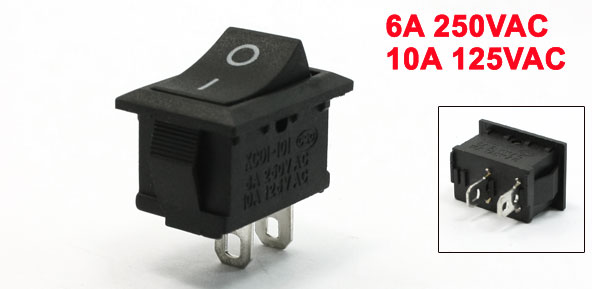 Product Name Rocker Switch Poles SPST Terminals 2 Pins Position ON/OFF Position Rated Voltage & Current 6A 250VAC 10A 125VAC Overall Size 2.1 x 1.5 x 2.5cm/0.8" x 0.59" x 1"(L*W*H) Mounting Size 1.8 x 1.2cm/0.7" x 0.47"(L*W) Color Black, Silver Tone Material Plastic, Metal Total Weight 4g Package Content 1 Pcs x Rocker Switch - Reviews