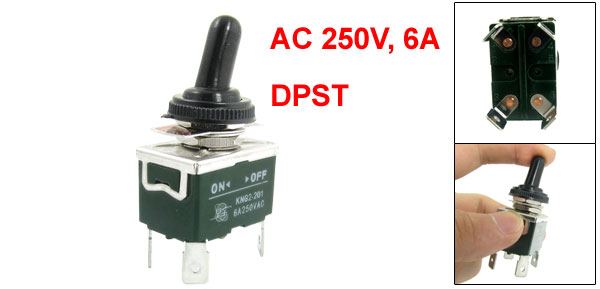 6A/250VAC on/off 2 Way DPST 4 Solder Terminals Toggle Switch w Waterproof Boot