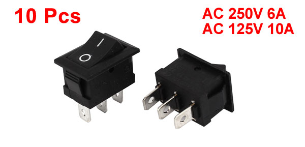 Main Color Black Product Name Rocker Switch Rated AC 250V 6A, AC 125V 10A Net Weight 38g Terminals 3-Pin Country of Manufacture CHINA Package Content 10 Pcs x Rocker Switch Type ON-OFF Material Plastic,Metal Total Size 22 x 20 x 15mm/0.9" x 0.8" x 0.6"(L*W*H) Mount Size 18 x 11mm/0.7" x 0.4"(L*W) - Reviews