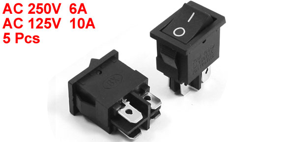 6A AC250V 10A AC125V 4-Pin DPST ON/OFF Snap in Boat Rocker Switch 5Pcs