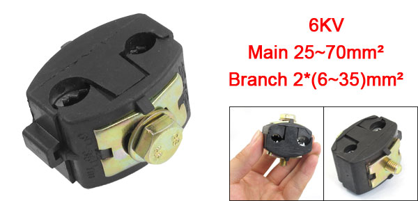 Product Name Insulation Piercing Connector Model TT2D82F Applicable Voltage 6KV Main Line 25~70mm² Branch Line 2*(6~35)mm² Bolt Number 1 Total Size 50 x 50 x 30mm/1.97" x 1.97" x 1.18"(L*W*T) Material Metal, Plastic Color Black Weight 92g Package 1 x Insulation Piercing Connector - Reviews