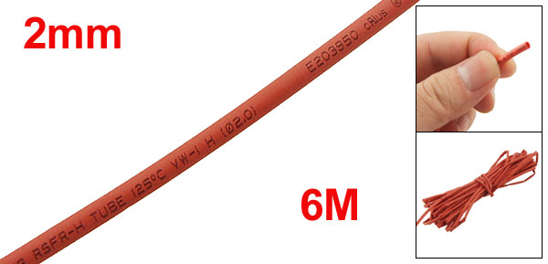 6M 19.7ft 2mm Dia Red Heat Shrink Tubing Shrinkable Tube
