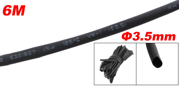 6M 19.7ft 3.5mm Dia Black Heat Shrink Tubing Shrinkable Tube