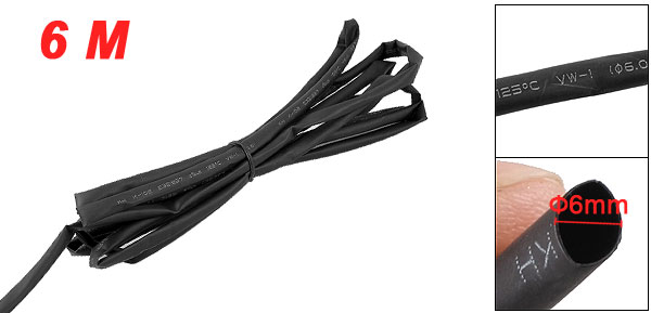 6M 19.7ft 6mm Dia. Heat Shrinkable Tube Shrink Tubing Black