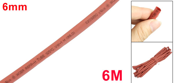 6M 19.7ft 6mm Diameter Heat Shrink Tube Shrinkable Tubing Red