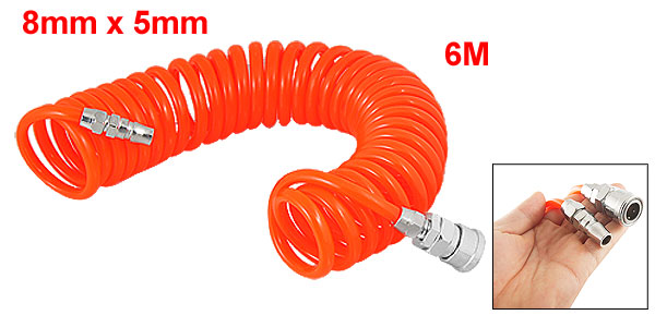 Product Name Pneumatic Spiral Hose Material Polyurethane, Metal Length 6M / 19.7Ft Working Pressure 6Kg/cm2 Hose Diameter 8 x 5mm/ 0.3" x 0.2"(Outside Dia* Inner Dia) Adapter Diameter 13mm/0.5" Outlet Diameter 8mm/0.3" Color Orange Red Weight 234g Package Content 1 x Pneumatic Spiral Hose - Reviews
